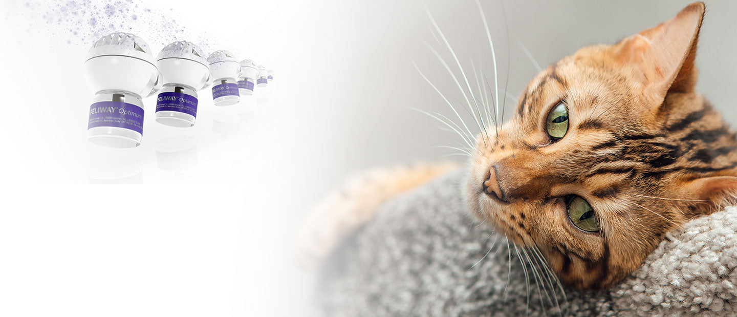 FELIWAY Optimum – notre solution apaisante la plus avancée, offrant une sérénité renforcée et réduisant davantage de signes de stress.