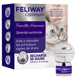 FELIWAY Optimum – notre solution apaisante la plus avancée, offrant une sérénité renforcée et réduisant davantage de signes de stress.