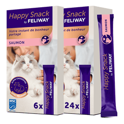 La dernière nouveauté de la gamme est Happy Snack by FELIWAY® – une délicieuse manière de soutenir l’équilibre émotionnel de votre chat. Ces friandises savoureuses contiennent une protéine de lait naturelle aux propriétés apaisantes, offrant une option douce pour réduire le stress quotidien et renforcer votre lien avec votre chat.