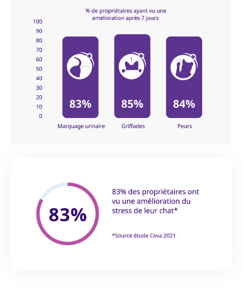 Réduit les signes de stress en 7 jours, pour la plus grande satisfaction des propriétaires de chats.