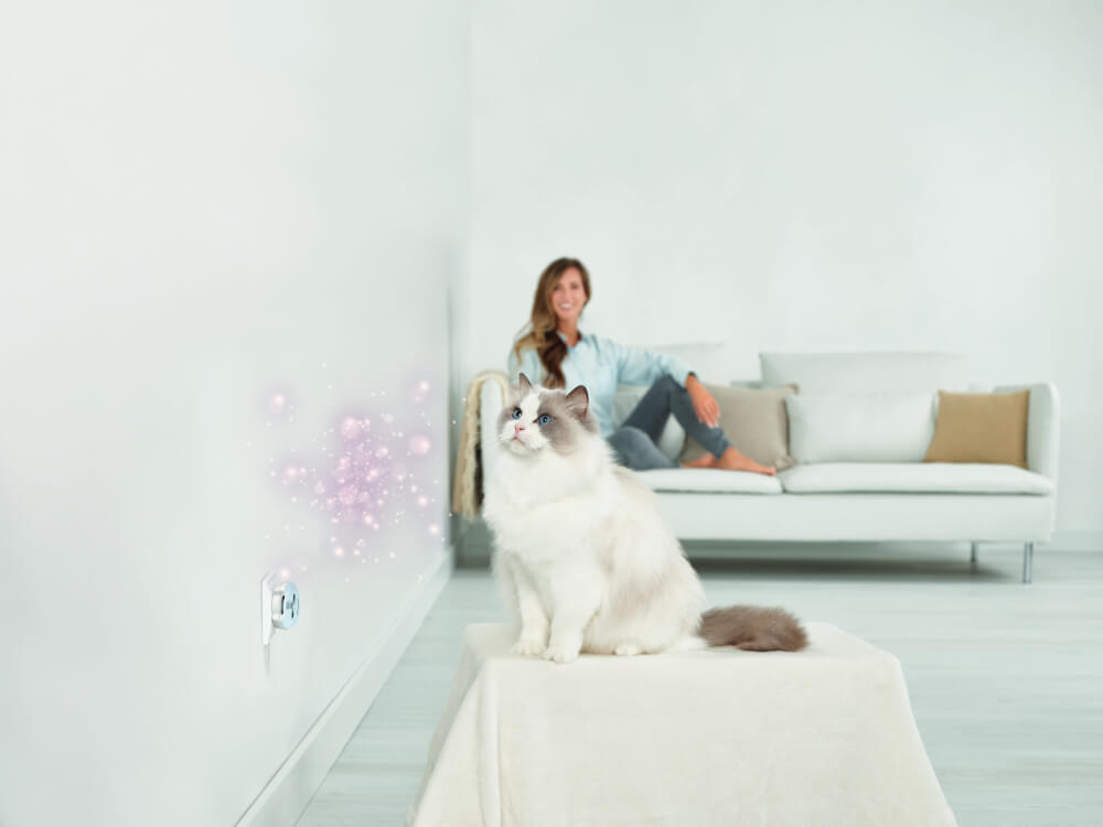 - Branchez le diffuseur sur une prise standard dans la pièce préférée de votre chat.